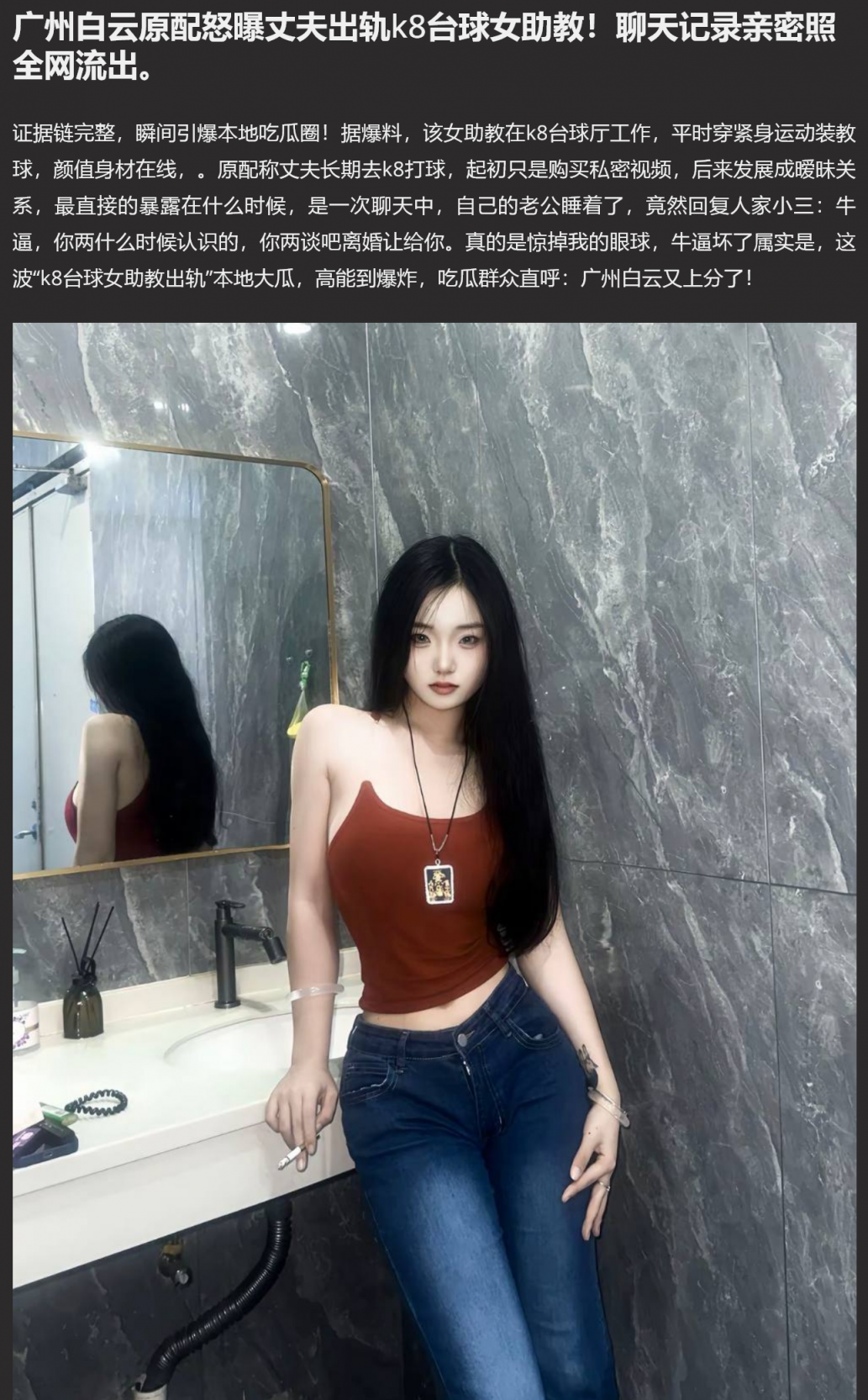 【7】❤️广州白云 k8台球女助教 原配曝光丈夫出轨台球女助教 助教的身材颜值果然高