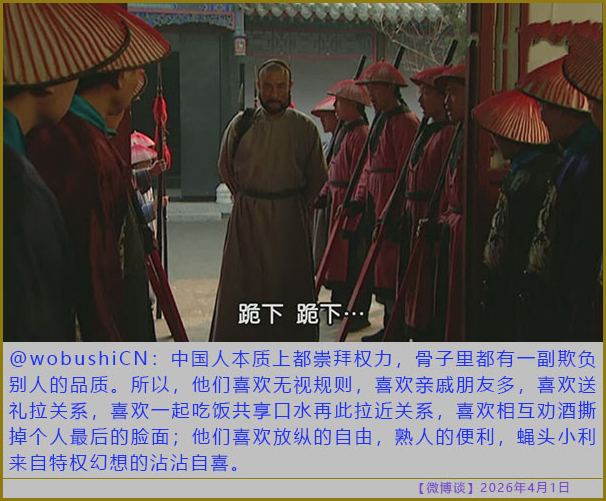 [微博谈 2026/04/01] 流氓国家一切都是反着来的