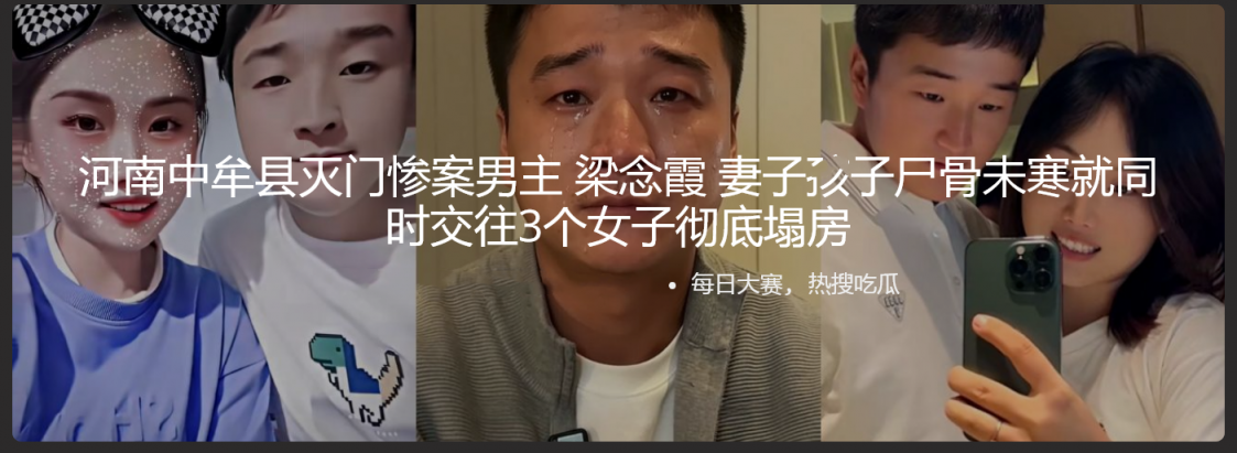 【4】☘河南中牟县灭门惨案男主 梁念霞 妻子核子尸骨未寒就同时交往3个女子彻底塌房